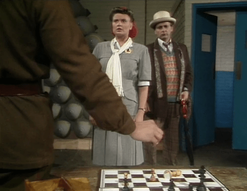 The Doctor works to redefine the rules of the game being played. He persuades the Ancient One to stop being a pawn in Fenric’s game, essentially exiting the chessboard, and instead becomes a player in the game, substituting into the Doctor’s place. This entraps Fenric in a game where he cannot foresee the winning move, and now he must face the consequences of mistreating his own game piece. And since the Ancient One now believes that mutual cooperation between them is no longer possible, they are left only with the option: to betray each other. Mutually assured destruction.
